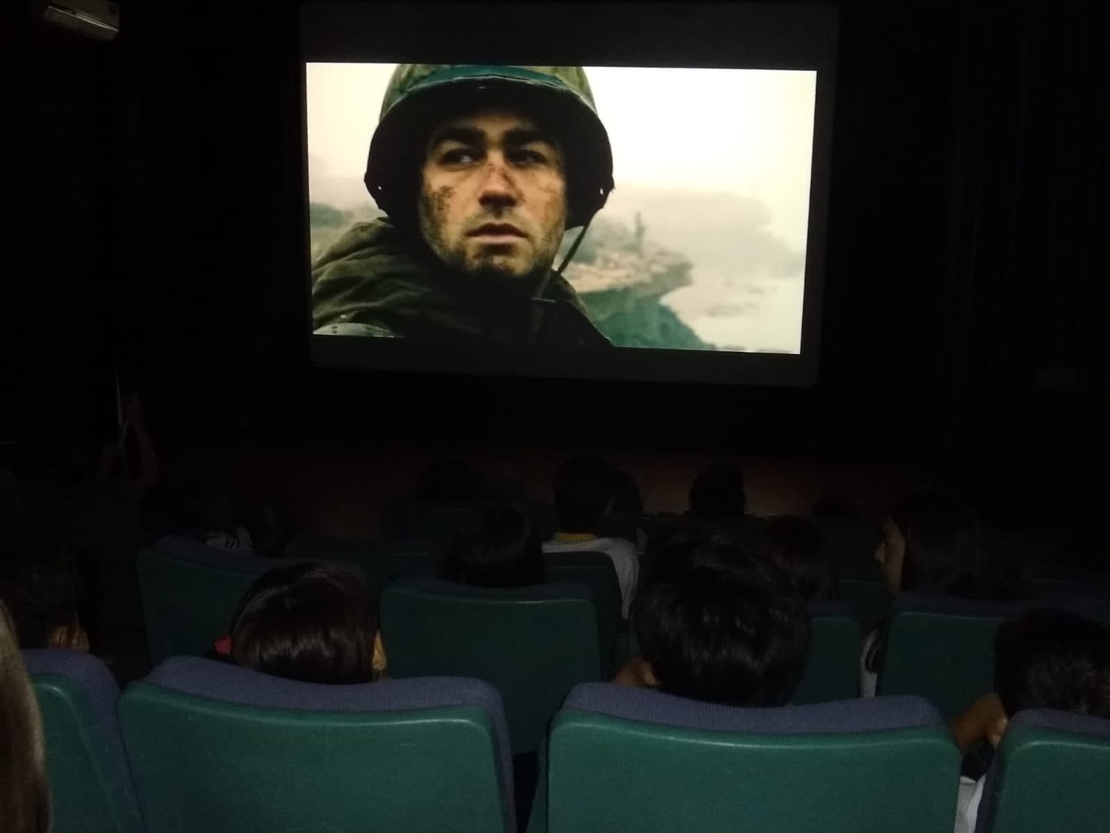 La jornada comenzó temprano en la mañana, con todos los alumnos de secundaria partiendo rumbo al Centro Cultural La Vía. Allí, primer ciclo pudo ver la película «Iluminados por el Fuego», que cuenta la historia de un grupo de soldados argentinos que lucharon en Malvinas. La película es conmovedora y emotiva, y logró impactar profundamente a los alumnos.